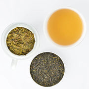 Jade green leaf with shotty appearance which, when infused evolves into a green infusion with light brown hues and grassy aroma.